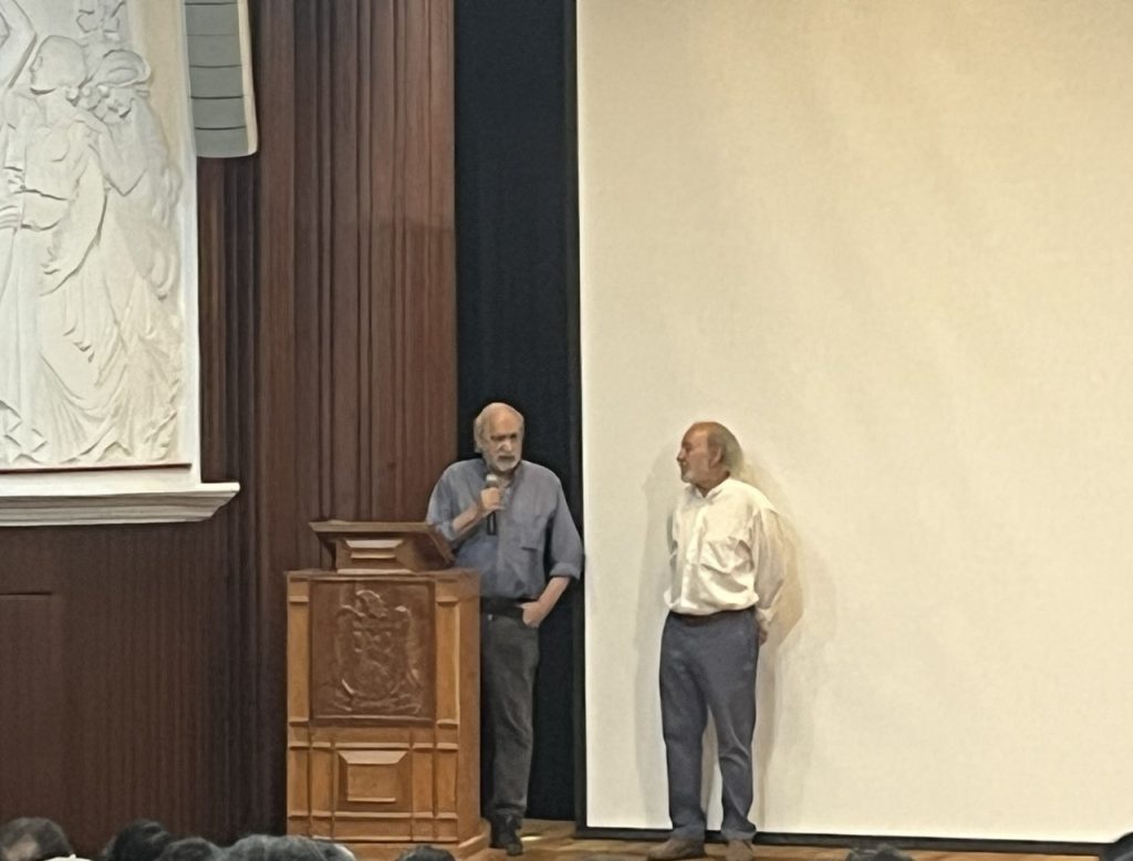 Al final de la proyección, durante un tiempo más, se extendieron el diálogo, los recuerdos y saludos para comentar el documental y reconocerse en esa lucha, para tomarse fotografías con el maestro Carlos Mendoza, para la plática sobre épocas pasadas que la memoria rescata, muchas de ellas removidas por el mensaje audiovisual proyectado la tarde-noche de ese sábado.