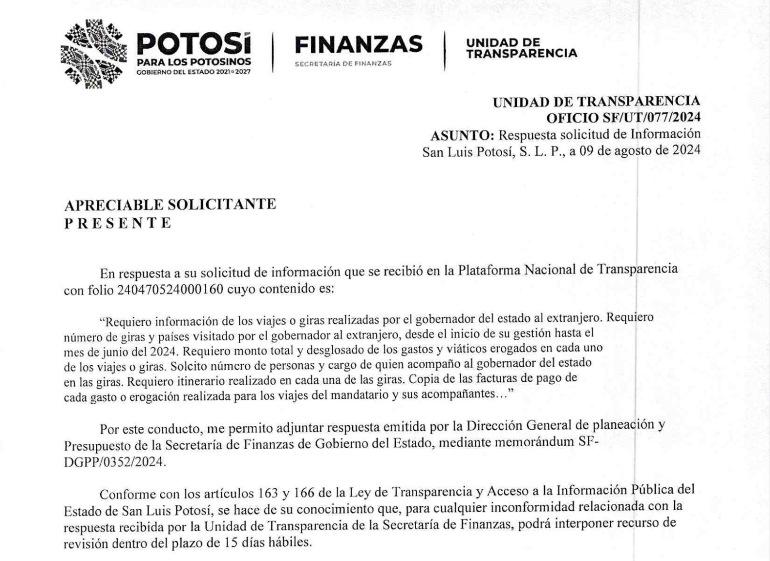 A todo eso se suma la respuesta a una solicitud de transparencia, a través de la cual se pedían detalles sobre las giras realizadas por el gobernador al extranjero, incluyendo número de personas que lo acompañaron, itinerarios y viáticos. La Secretaría de Finanzas se limitó a contestar que esa dependencia solo es responsable de ministrar el presupuesto, “mas no de su administración o ejercicio financiero”.