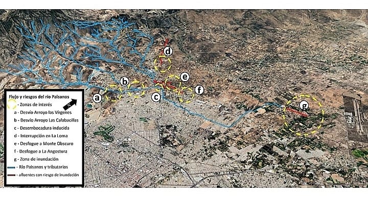 También localizaron en la parte noreste del segmento de la cuenca, y en la parte conurbada de Mexquitic, un arroyo que perdió conectividad con el arroyo La Campana, dejando un área con alto riesgo de inundación en una zona conocida como La Loma.